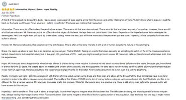 I finally finished the book. WOW!! it really takes a different type of bravery and courage to stand up like the author did here. Considering the social stigma and the inherent nastiness people display when they are uneducated on a subject, especially something as "taboo" as herpes. I feel it took some serious fortitude to come forward the way he did. He really believes in the vaccination and selflessly helping other who are also suffering. Imagine the gumption it takes to make the choice to be a recipient for the human trials for the vaccine? I hope when the dust settles and people can get some actual relief in their lives from this terrible disease, Rich will get the accolades he deserves. He really puts himself out there both psychically and emotionally to put things in perspective for an otherwise uneducated population. I highly recommend this book, as it gives real insight to the life and struggles that Rich faces day in and day out. I feel he championed a cause that just about 0% of the people out there would have the courage to champion. This is insight EVERYONE suffering or not needs to read. I have a much different view on herpes now, and I do believe that was exactly his point.